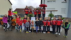 Am 18. September fand der jährliche Winzerfestumzug in Auggen statt. Auch der TuS Auggen war wieder dabei. Trotz des schlechten Wetters waren 25 Kinder, Jugendliche und Trainer dabei. Neben einem einstudierten Flashmob wurde auch am Barren geturnt, mit den Seilen gesprungen und Einrad gefahren. Alle hatten sehr viel Spaß und freuen sich schon auf nächstes Jahr, hoffentlich ohne Regen.